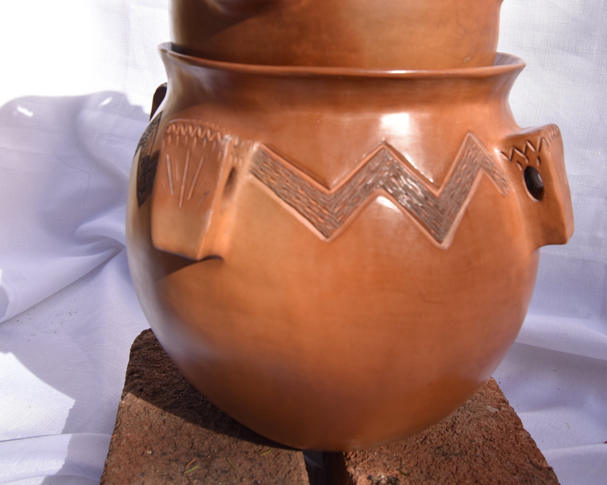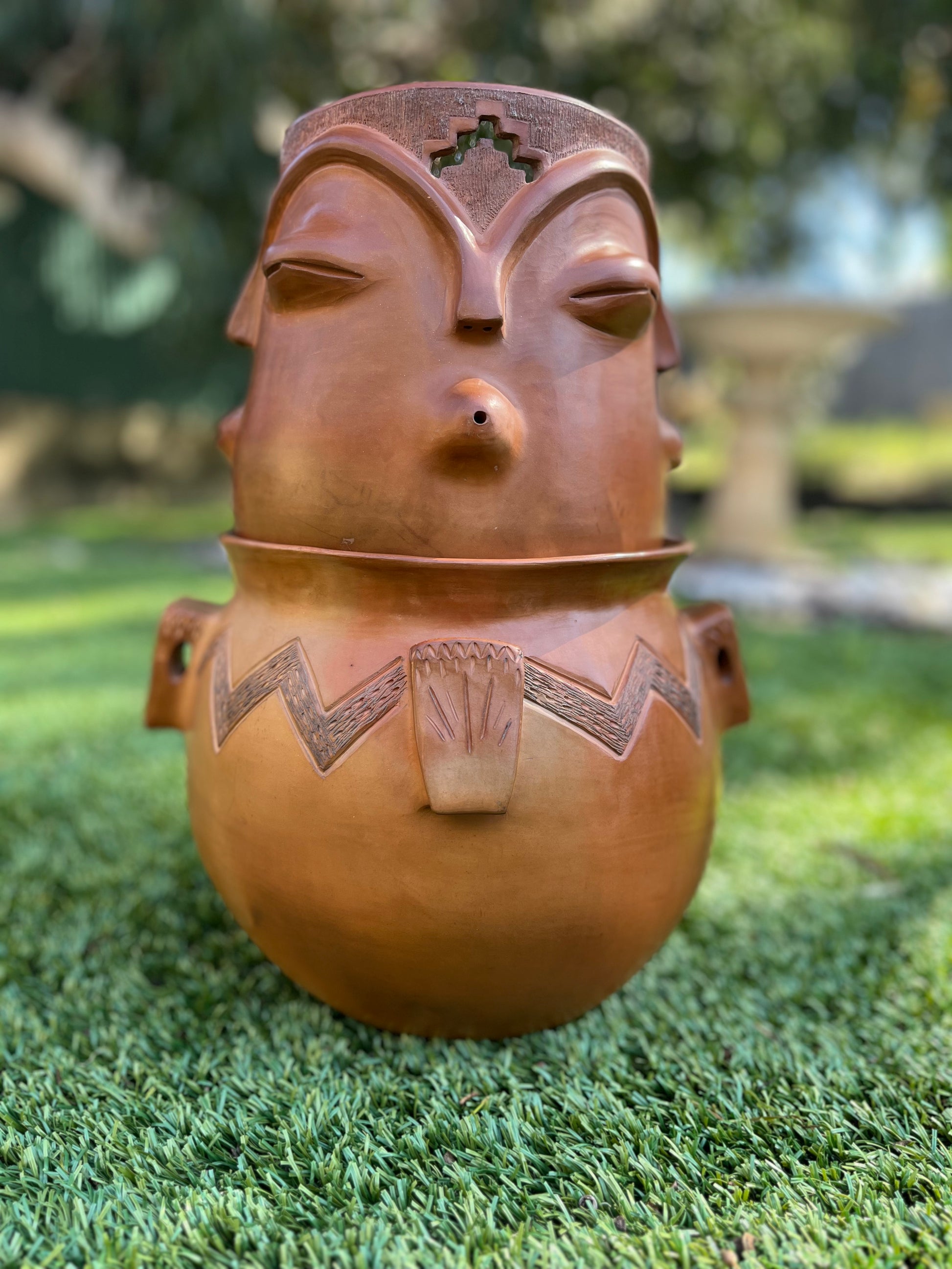 Vessel with handles shaped as serpent heads, symbolizing ancestral protection and transformation.